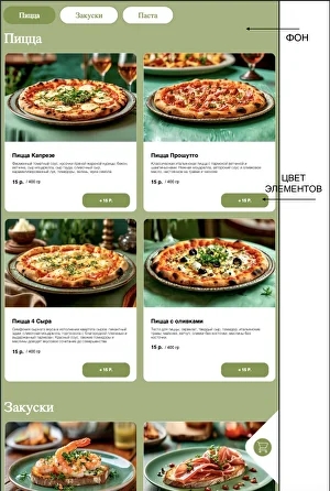 Яркая и строгая тема оформления. Для редактирования доступны фон и цвет элементов. На макете Фон - #a2b37c, Цвет Элементов - #809649